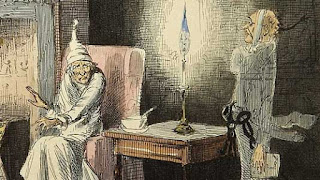 This brings us back to what Quigley and Cohn had to say about cumulative meaning and that’s when I realised that there’s something actually quite Dickensian about this play. I’m thinking specifically of A Christmas Carol and the four visitors, the three ghosts of Christmas plus Jacob Marley in the role of the harbinger. I see the three visitors—I’m counting the couple as one by the way—as representing the Past, the Distant Past and the Present. Let me explain.